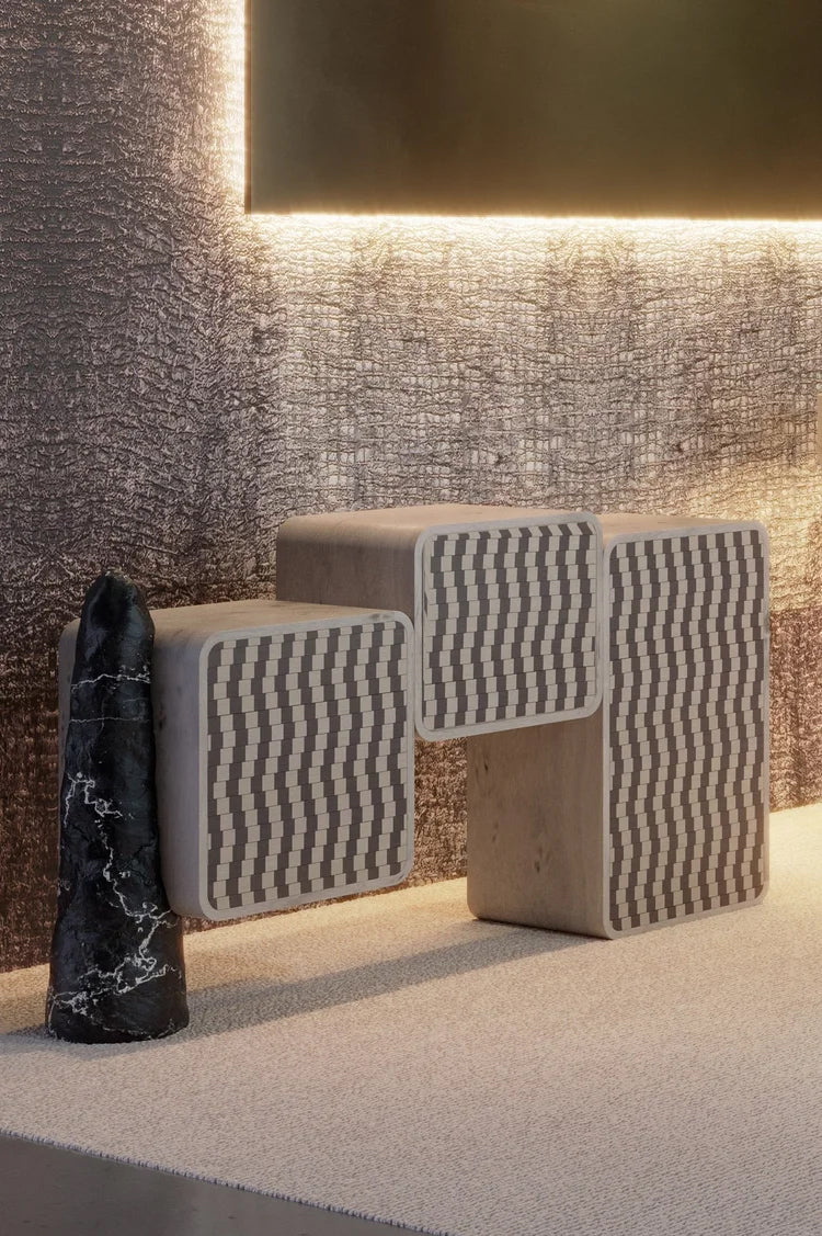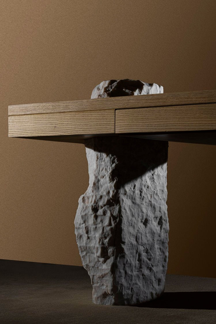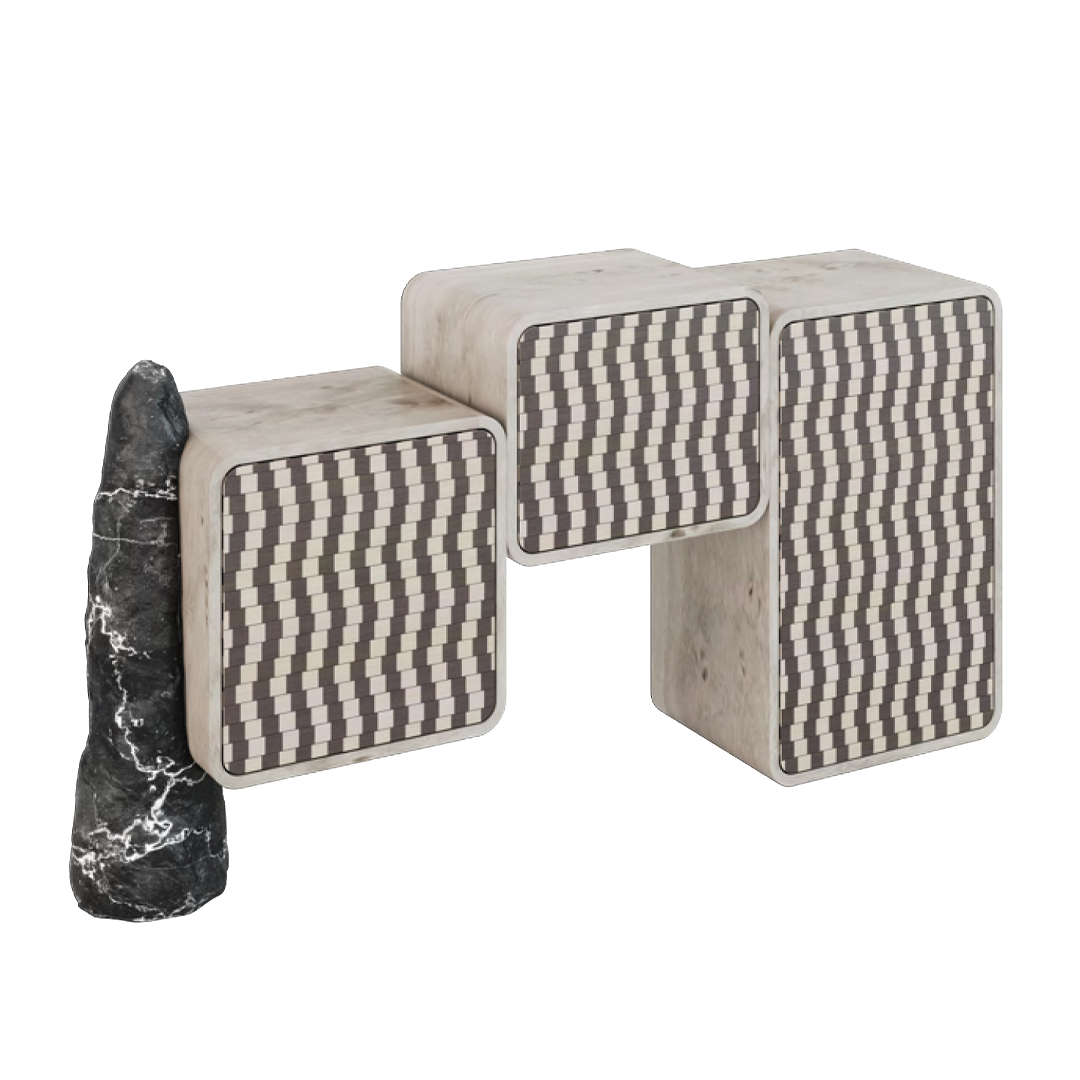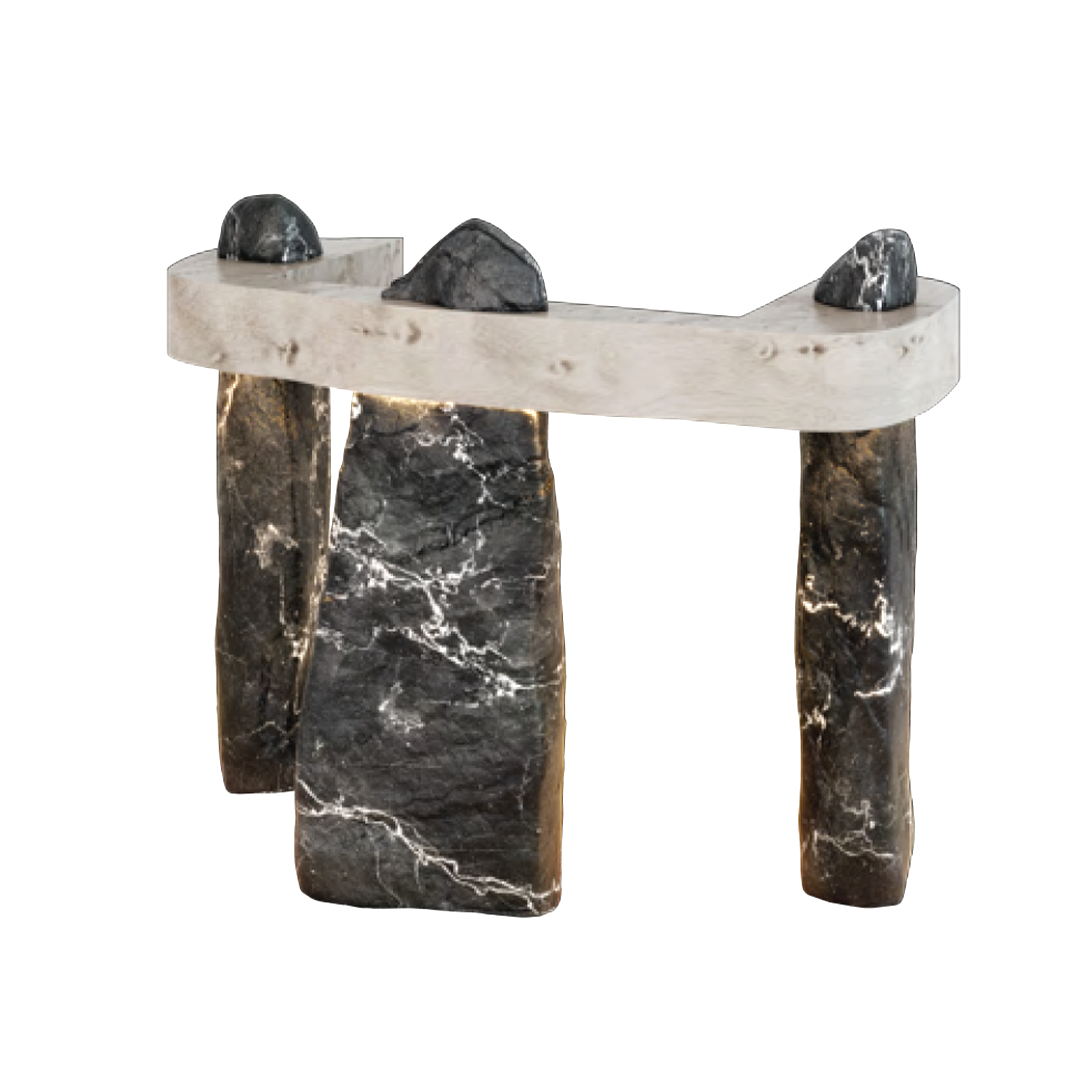 The Distinctive Credenza Bar features a unique aesthetic with seamlessly integrated bubble formed sections, creating a dynamic and visually engaging texture. The playful curves and irregular shapes add an artistic and contemporary touch, captivating the eye. Supported by a solid stone marble base, the credenza exudes timeless elegance and stability, serving as a luxurious foundation that elevates the overall aesthetic. More than a functional storage solution, this credenza is a sculptural statement piece that blends avant-garde design with the enduring beauty of solid stone marble, bringing artistry and sophistication to any space.